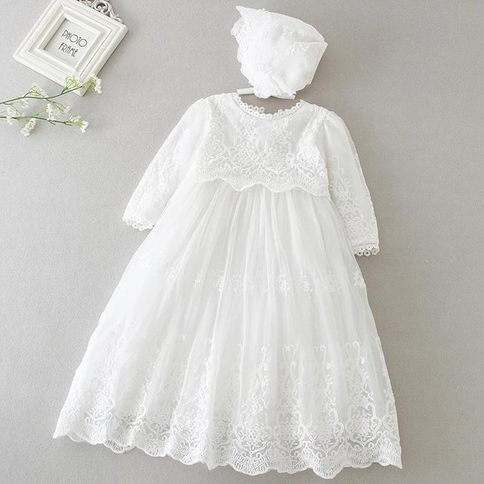 Everything about the Julia paints a perfect picture of innocence and purity, making it an easy choice for your baby’s biggest religious milestone to date. With its long sleeves and scalloped details, she’ll look like a dream wearing this piece, especially when it’s paired with the matching bonnet.